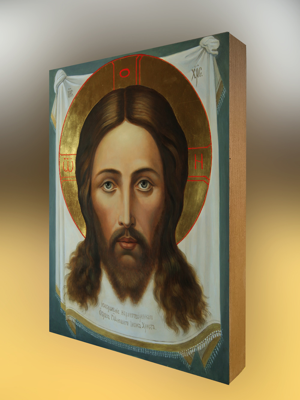 Репродукция иконы Спаса Нерукотворного, находящейся в Успенском Соборе Свято-Успенского Псково-Печерского монастыря.